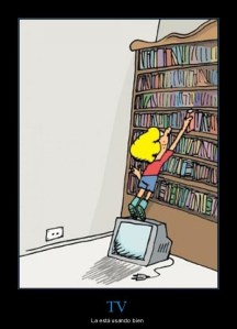 Hay quien dice que la TV tiene cosas malas; pero yo digo que no necesariamente. Hace, por ejemplo, que se fomente la lectura, si el material que hay en ella es lo suficientemente interesante e inteligente para suscitar el interés de los lectores potenciales del otro lado de la pantalla.