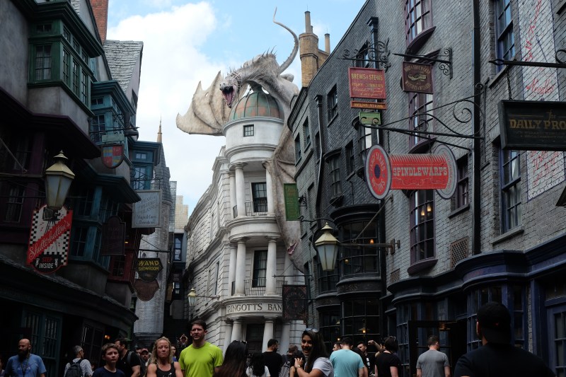 Así fue también “Escape de Gringotts”, la atracción que recrea la escena en que Harry huye del banco mágico tras haber logrado encontrar la copa de Helga Hufflepuff en la cámara de seguridad del banco. Un citio hermoso, que recrea con toda la fidelidad el banco de los magos. Desde las lámparas de la recepción hasta el pasillo de cajeros por el que camina Harry cuando descubre que es un mago; todo está fielmente recreado y realza la experiencia.