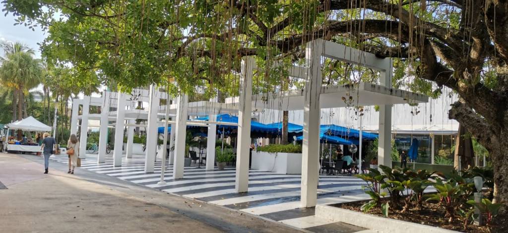 Fuimos a Miami Beach; y en particular a Lincoln Road; un boulevard peatonal que lleva a la playa. Estaba igual de vacío que el resto de la ciudad, lo cual encontramos sorprendente siendo un puente; pero en línea con las circunstancias por las que estamos atravesando.