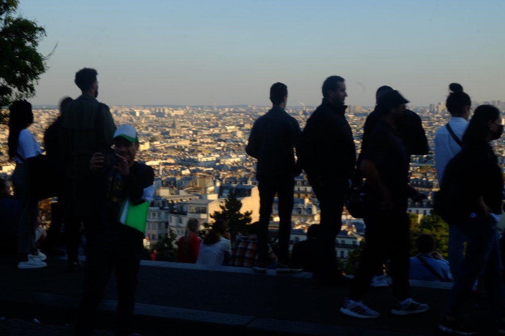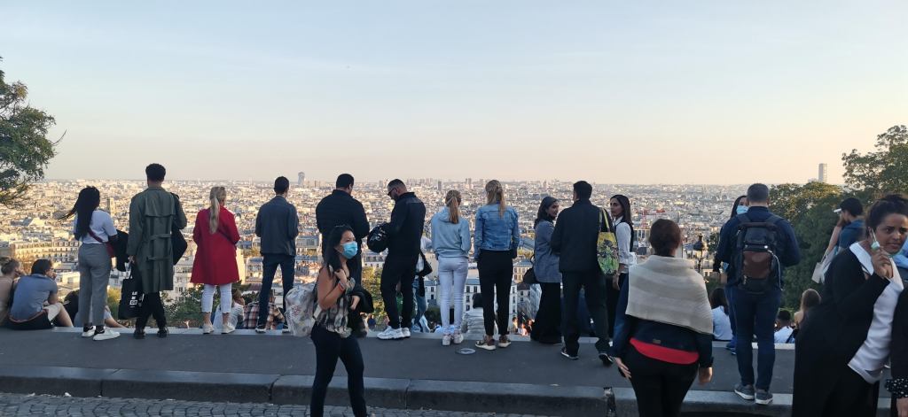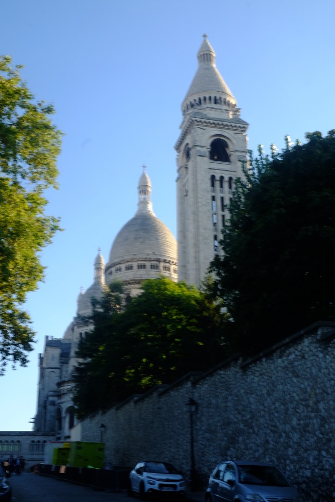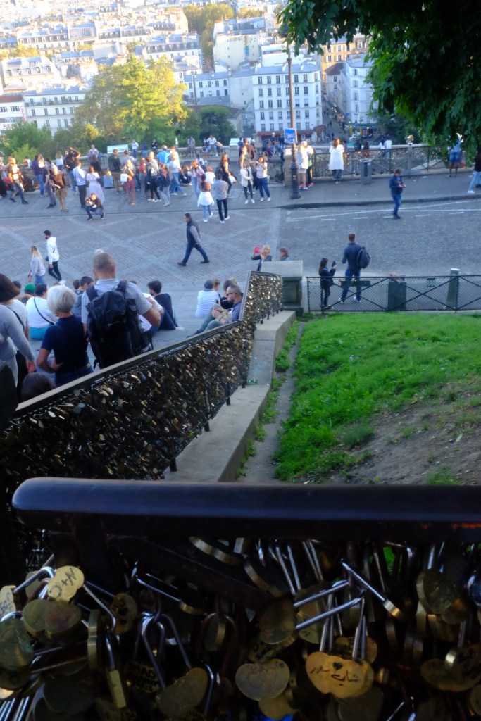 Disfruté mucho el tour. Pasamos ante la casa de Van Gogh, el viñedo de París, la Casa Rosa, los molinos (sí, el nombre de Moulin Rouge no es gratuito); y así, fuimos subiendo rodeando y dando vueltas (es decir, no en un ascenso frontal sino dando vueltas al cerro) hasta llegar a la famosa basílica del Sacré Coeur. Valga decir que me habían avisado de los mil y un timos que me encontraría allá, pero no encontré ninguno. Ni rateros había. Lo que sí había era personas pasándola genial en esta tarde de finales de verano, escuchando música y divirténdose, con una vista espectacular de París como telón de fondo.