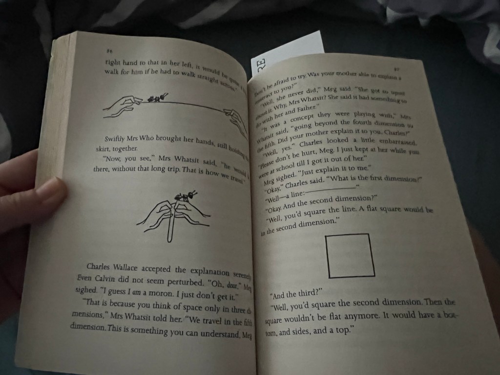 El libro también puede presentar con claridad conceptos complejos como la cuarta dimensión y el acto de moverse a través del tiempo y el espacio (lo que llaman tesseract), de manera clara y concisa. Precisamente, de ahí es que toma el nombre.